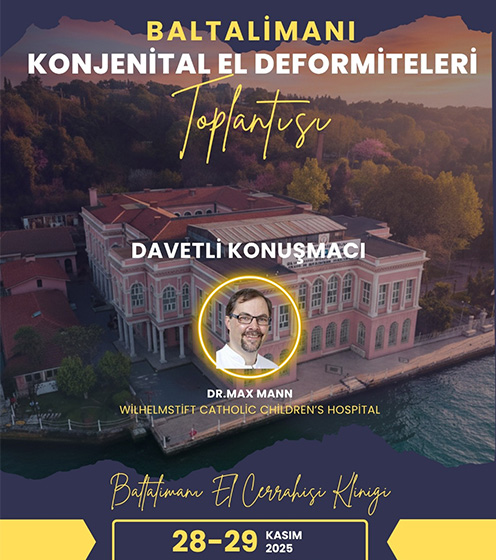 Metin Sabancı Baltalimanı Kemik Hastalıkları Hastanesi İSTANBUL BALTALİMANI KONJENİTAL EL DEFORMİTELERİ Detayları İnceleyin 28-29 Kasım 2025 19. Ulusal El ve Üst Ekstremite Cerrahisi Kongresi BODRUM 8. ULUSAL EL REHABİLİTASYONU KONGRESİ Detayları İnceleyin 16-19 Mayıs 2025 ETKİNLİKLER 29 Kas Konjential El Deformiteleri Toplantısı İstanbul 29 Kasım 2025 10 Oca Canlı Cerrahi ve Kadavrada El ve El Bilek Artroskopi Kursu Antalya 10-11 Ocak 2025 04 Eki Teücd Çanakkale Bölgesel Toplantısı Çanakkale 04 Ekim 2025 16 Mar Kadavrada El ve El Bileği Travma Kursu İzmir 16 Mart 2024 10 Nis Kad. El Bilek Art. B.parmak KMK Ek. Art. ve End. K. Tünel Cer. Kur. Ankara 10-11 Nisan 2025 09 Şub Prof. Dr. Rıdvan Ege 18.İleri El Cerrahisi Kursu İzmir 09-10 Şubat 2024 21 Şub Prof. Dr. Rıdvan Ege 19. Temel El Cerrahisi Kursu Ankara 21 Şubat 2025 09 Eyl Kadavrada Üst Ekstremite Tendon Transferleri Kursu Ankara 09 Eylül 2023 DUYURULAR Teüecd Olağan Genel Kurul İlanı Muğla 18/05/2025 İnceleyin 18 MAY Fleksör ve Ekstansör Tendon Yaralanmalarında Rehabilitasyon Yöntemleri Ankara 20/04/2025 İnceleyin 20 NIS Üst Ekstremite Ortak Kış Sempozyumu Erzurum 05/01/2022 İnceleyin 05 OCA Önemli Duyuru-Prof. Dr. Rıdvan Ege 19. Temel El Cerrahisi Kursu Ankara 21/02/2025 İnceleyin 21 ŞUB Teüecd Olağanüstü Genel Kurul İlanı Ankara 23/04/2023 İnceleyin 23 NIS Çukurova Bölgesi Eğitim Klinikleri Toplantıları Ankara 21/12/2019 İnceleyin 21 ARA